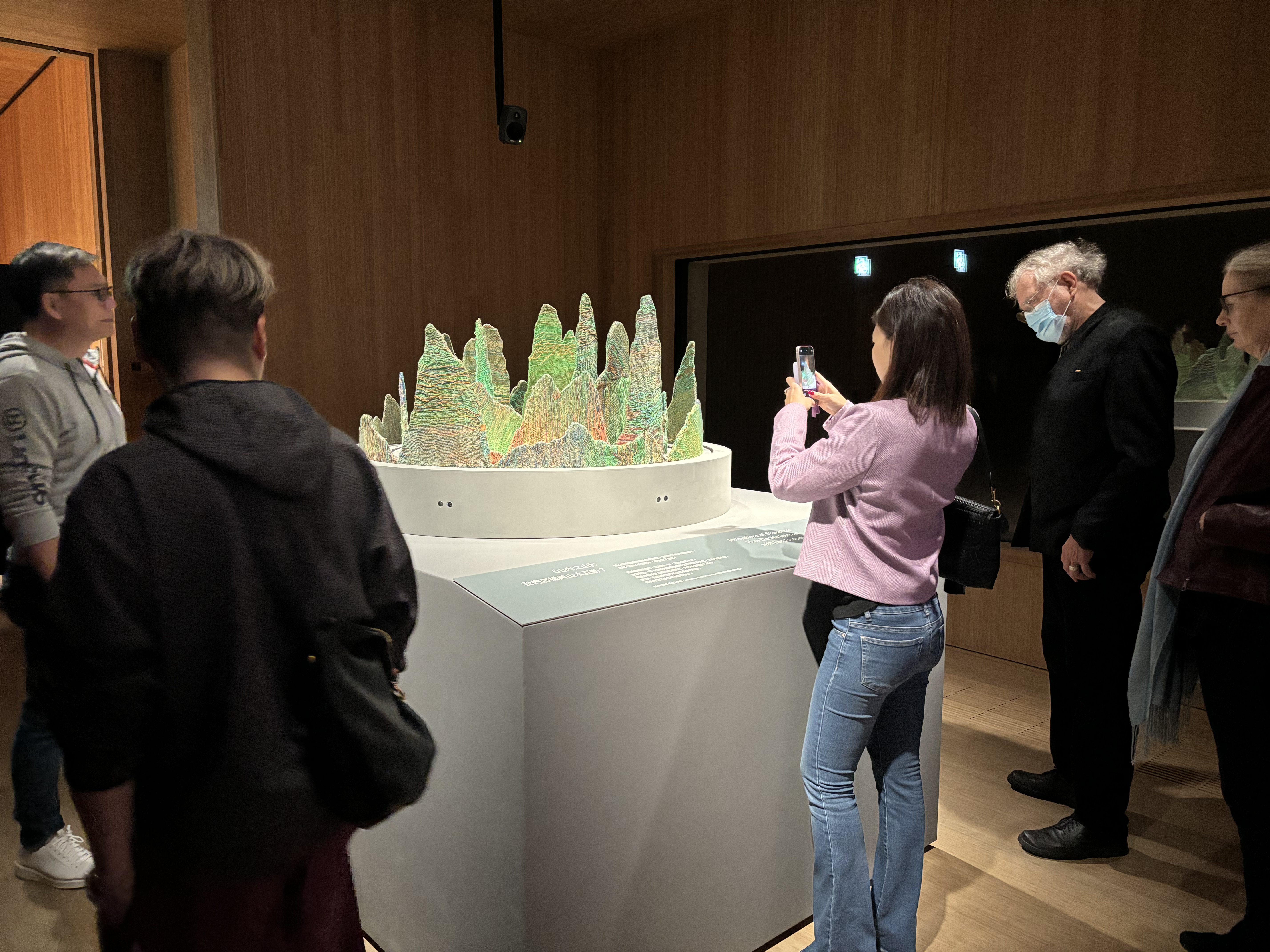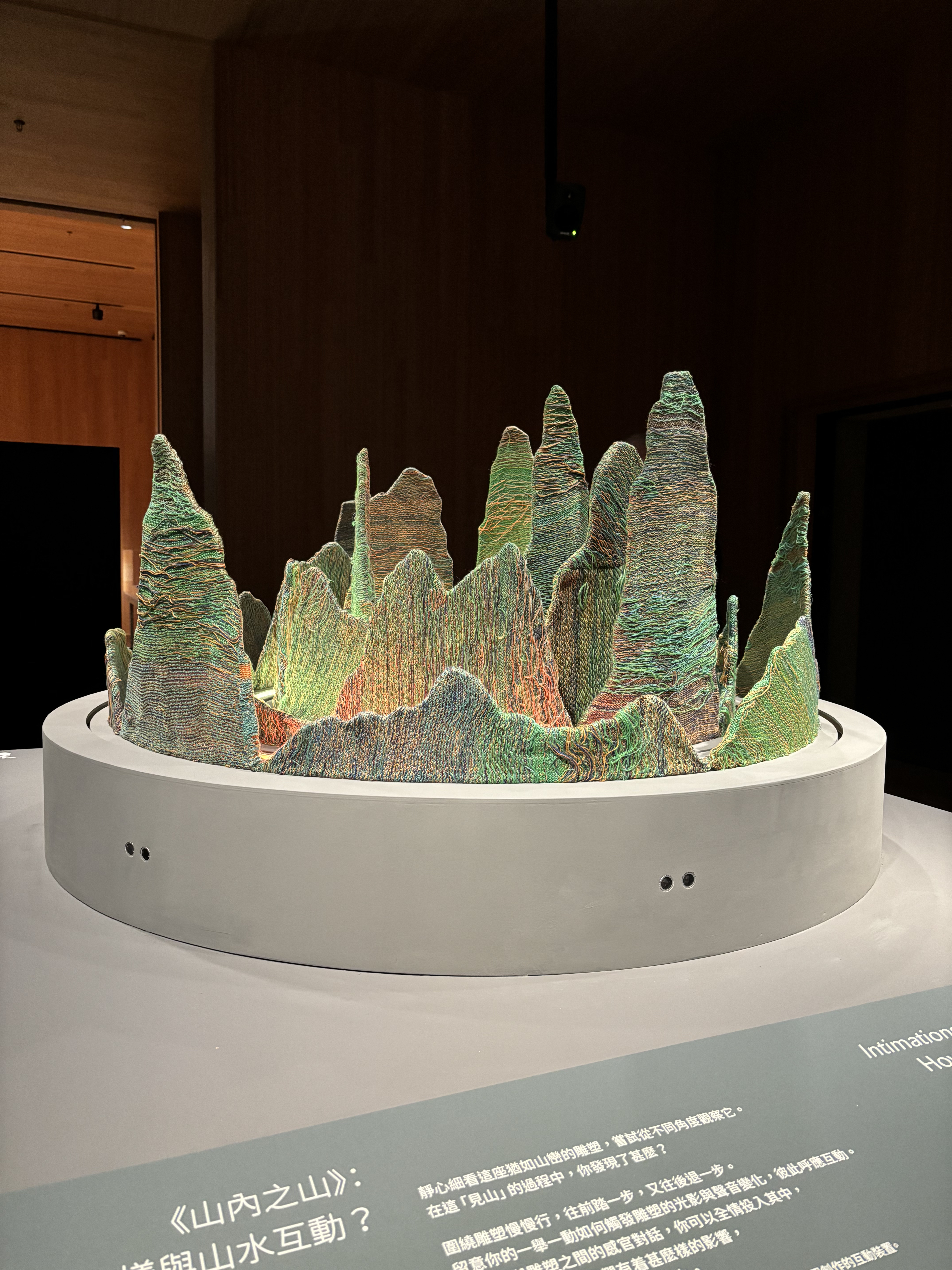 The work is an ode to Shanshui paintings, bridging tradition and modernity through its interactive nature and the composition of textiles.
